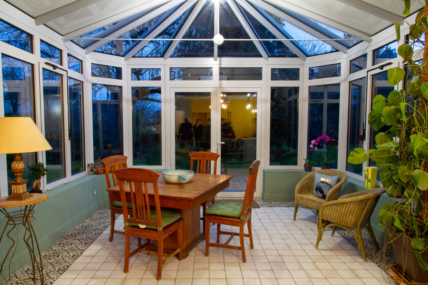 Création d’une extension/véranda pour cette majestueuse maison de maître – Aménagement et mise en couleurs de la cuisine et pièce à vivre.